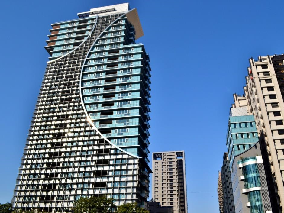 6. 高雄HH大樓是台中以南第一棟由普立茲克建築獎得主設計,本案由1985年得主、奧地利國寶級建築師Hans Hollein設計,Hans Hollein特別為本案設計的外牆採雙牆系統更是全球唯一的設計,施工團隊成功突破各種技術難度,實現全球獨一無二的外牆。